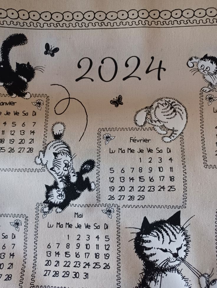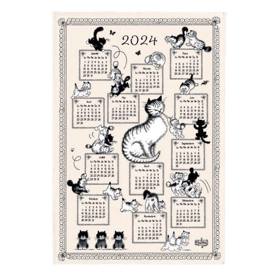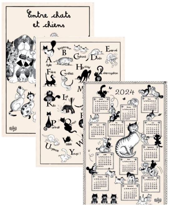 French cats 2024 calendar tea towel, featuring images by well