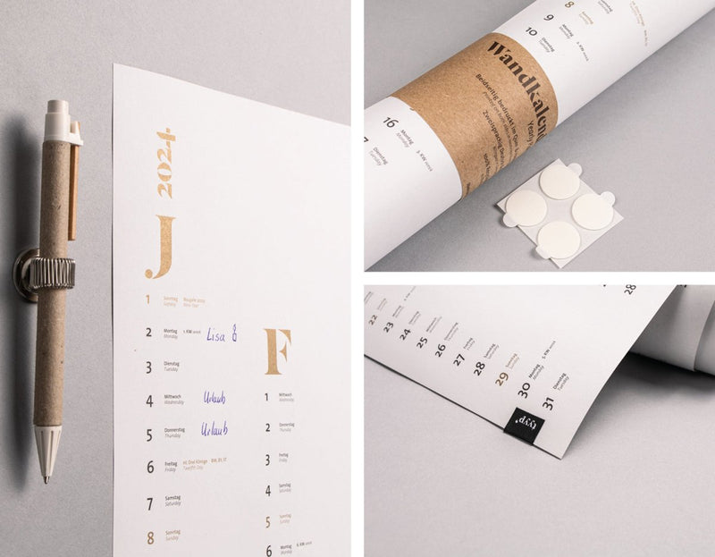 Sustainable annual calendar 2024 made from 100% recycled paper